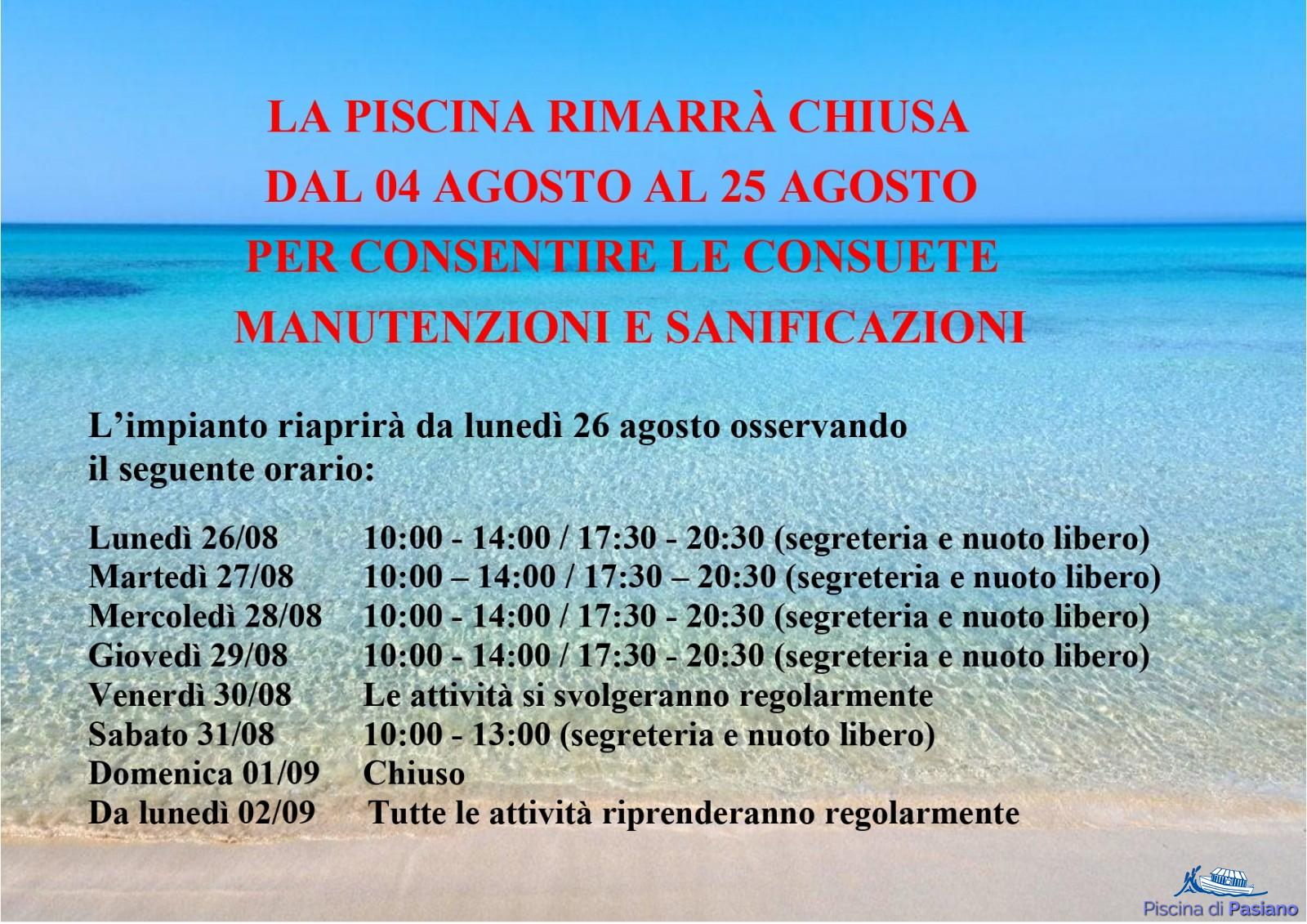 Chiusura impianto periodo estivo Articolo del 20/07/2024 ‹ › × × Chiusura impianto periodo estivo Commenti Abilita JavaScript per visualizzare i commenti tramite Disqus.